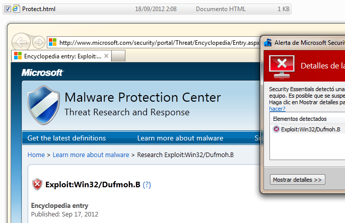 El exploit (Protect.html) inicialmente no era detectado por ninguna casa