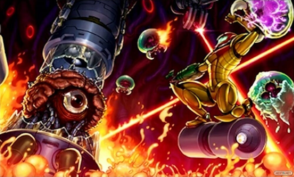 <<< A Samus le asignan el cuidado del equipo de investigación llamado Biometrox ubicado en el planeta SR388, viejo conocido de Samus. Es atacada por un ser desconocido hasta que le informaron que fue un organismo parasitario llamado X por lo que tuvo que regresar a la estación. En el camino, perdió el conocimiento a consecuencia de que su sistema nervioso central fue invadido por el parásito provocándole el desmayo por lo que la nave se desvió a un cinturón de asteroides estrellándose y expulsando la vaina de escape instantes antes siendo recogida por la estación espacial de Biometrox. Samus fue llevada al cuartel general mientras el parásito X seguía corrompiéndole y fusionando partes del traje con ella hasta que tuvieron que intervenirla quirúrgicamente llegando a darle por muerta hasta que propusieron emplear células metroides para crear una vacuna contra el X. Recordaron que el único ser capaz de anular al parásito X eran los metroides por lo que prepararon un suero y se lo inyectaron creando así lo que conoceríamos como el Traje Fusión. El parasito X fue destruido siendo la segunda vez que la vida de Samus fue salvada gracias a un metroid.