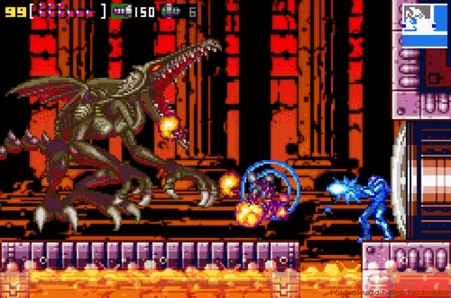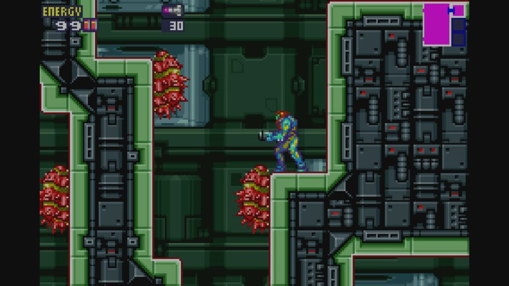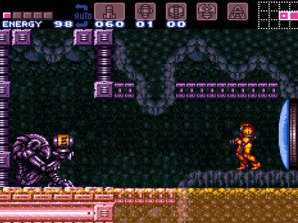 Súper Metroid es el original sin trampa ni cartón, con las carencias de aquellos años, aunque es juego que se disfruta mucho. Tendrás que tener un poco de paciencia si quieres descubrirlo todo y tu objetivo de cada zona es localizar la sala de descarga del mapa. Una vez descargado el mapa de las diferentes zonas, podrás ver todas las zonas a explorar, teniendo en cuenta que podrás encontrarte la sorpresa de encontrar algunas zonas escondidas, pero hasta que no llegas a la sala concreta, no sabes qué mejoras necesitas y tampoco sabes por donde puedes acceder por lo que te obliga a explorar cada rincón y tendrás que ir para delante y para detrás más veces que en los otros Metroid, muchas más veces. Algunos dicen que es un Metroid largo, pero lo que ocurre es que se hace largo ya que el mapa es poco descriptivo y tendrás que recorrer las mismas zonas varias veces. Mi consejo es que localices un mapa por internet que te dé la información que carece el mapa del juego y así te ahorrarás un valioso tiempo, yo me lo he pasado así y he tardado una 7 horas y media para hacer el 100%.