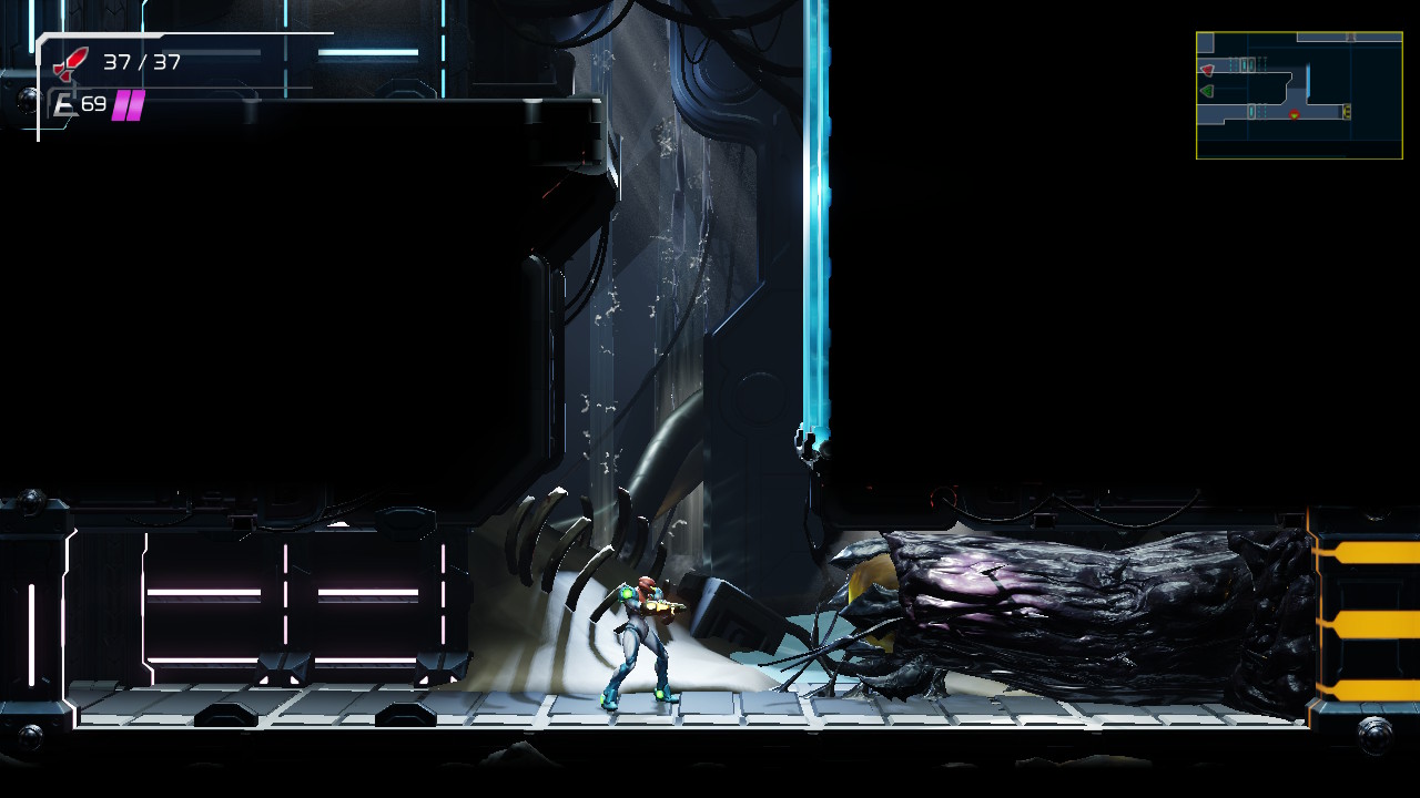 Este Metroid tiene un sistema de juego casi idéntico a Metroid Samus Return y aunque no tiene la posibilidad de ponerlo en 3D como en la Nintendo 3DS, no lo necesitas. El mapeado es espectacular, el efecto 3D brillante y las cinemáticas muy chulas. Tiene algo nuevo y es el poder deslizarte por espacios pequeños, algo que es muy práctico porque hace que te conviertas en morfoesfera de forma automática en los conductos y también puedes pasar por debajo de los enemigos.