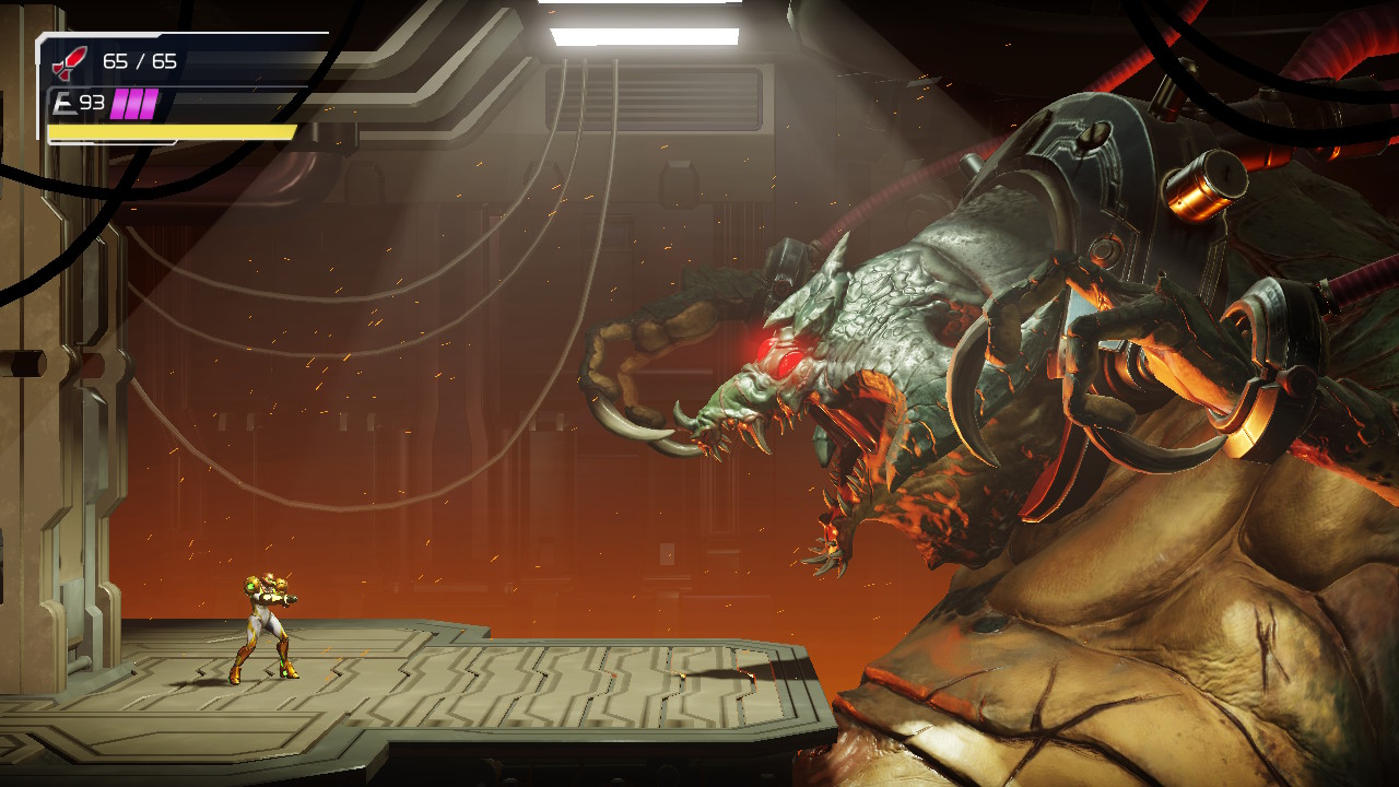 <<< Después de que el bebé Metroid siguiera a Samus como un chiquillo confundido y derrotasen a Ridley, nuestra cazarrecompensas decidió entregar la larva a la central de investigaciones de Ceres, donde podrían estudiar las cualidades energéticas, descubriendo que la absorción de energía por parte del Metroid se podía usar en beneficio de la humanidad. Pero… La estación fue atacada por Ridley llevándose al bebe Metroid sin que Samus pudiera hacer nada.
