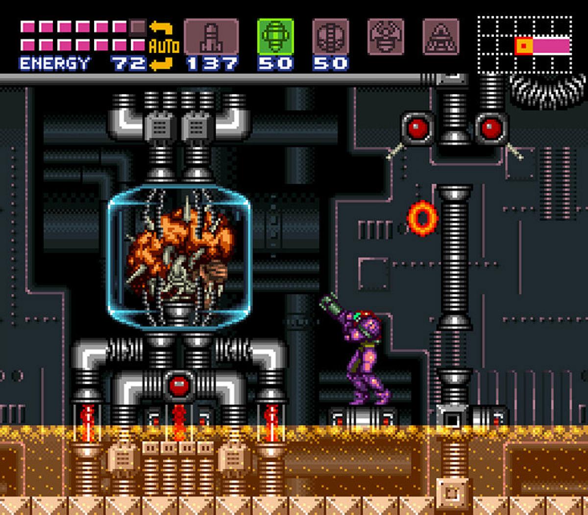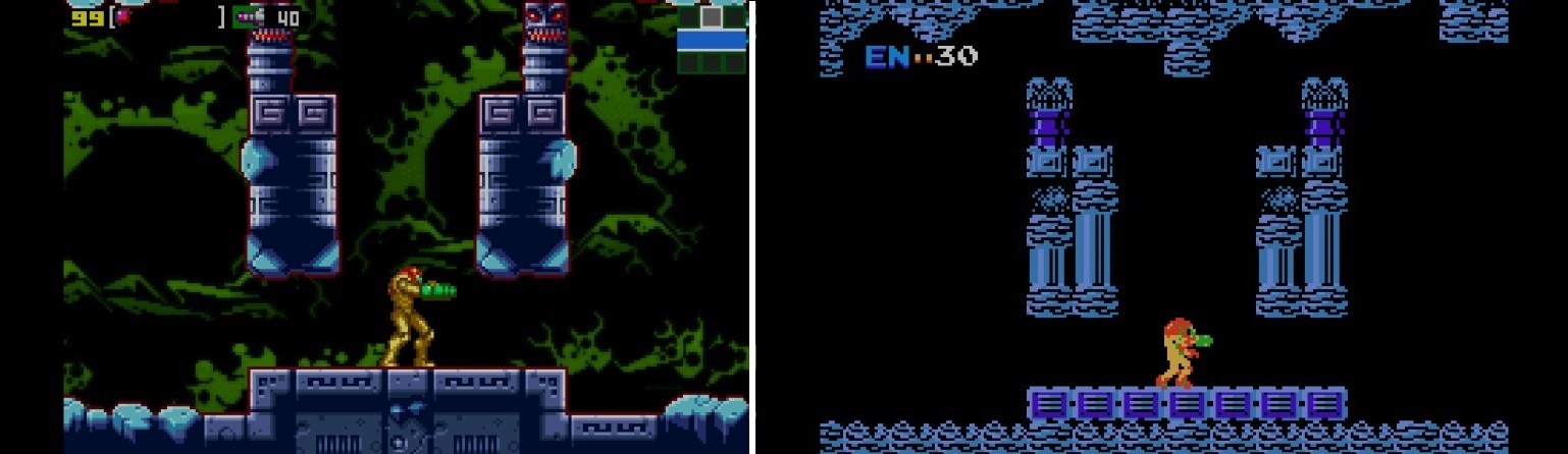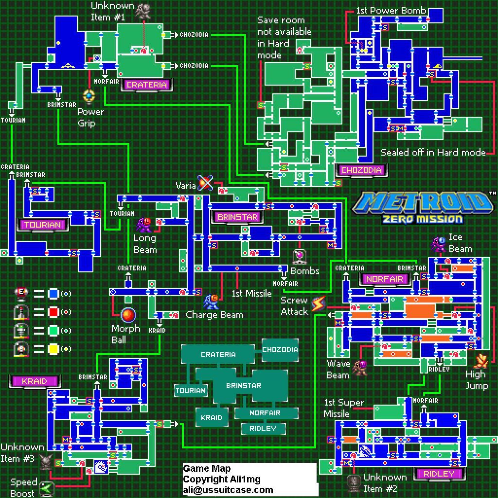 Súper Metroid es el original sin trampa ni cartón, con las carencias de aquellos años, aunque es juego que se disfruta mucho. Tendrás que tener un poco de paciencia si quieres descubrirlo todo y tu objetivo de cada zona es localizar la sala de descarga del mapa. Una vez descargado el mapa de las diferentes zonas, podrás ver todas las zonas a explorar, teniendo en cuenta que podrás encontrarte la sorpresa de encontrar algunas zonas escondidas, pero hasta que no llegas a la sala concreta, no sabes qué mejoras necesitas y tampoco sabes por donde puedes acceder por lo que te obliga a explorar cada rincón y tendrás que ir para delante y para detrás más veces que en los otros Metroid, muchas más veces. Algunos dicen que es un Metroid largo, pero lo que ocurre es que se hace largo ya que el mapa es poco descriptivo y tendrás que recorrer las mismas zonas varias veces. Mi consejo es que localices un mapa por internet que te dé la información que carece el mapa del juego y así te ahorrarás un valioso tiempo, yo me lo he pasado así y he tardado una 7 horas y media para hacer el 100%.