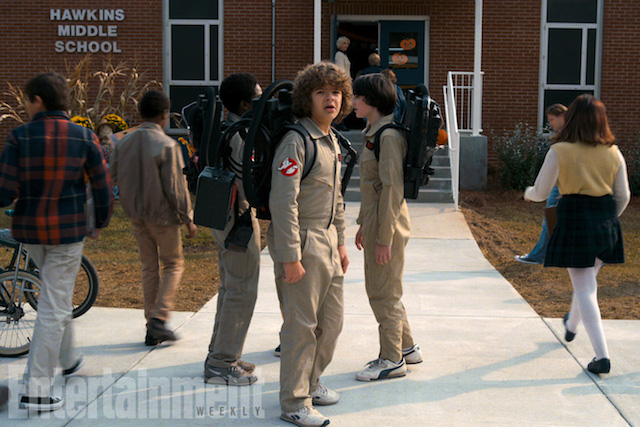 El video comercial podrá verse mañana durante la Super Bowl LI, de forma que, para ir abriendo boca, se ha filtrado la imagen que ves sobre estas líneas, extraída de dicho adelanto. En ella podemos ver a tres de sus protagonistas, Dustin (Gaten Matarazzo), Mike (Finn Wolfhard) y Lucas (Caleb McLaughlin), frente al instituto vistiendo el atuendo de los Cazafantasmas. ¿Podía haber una manera más auténtica de vestir a estos adorables niños?