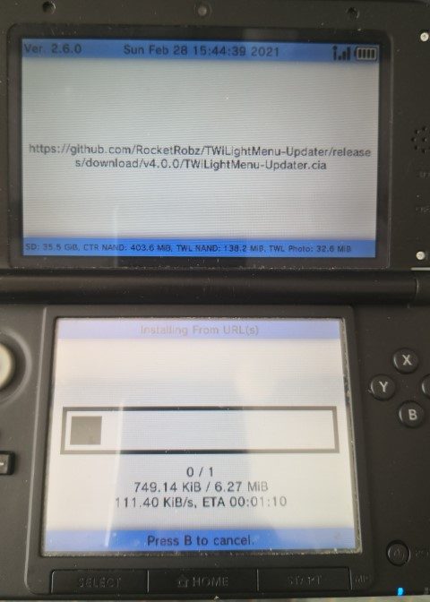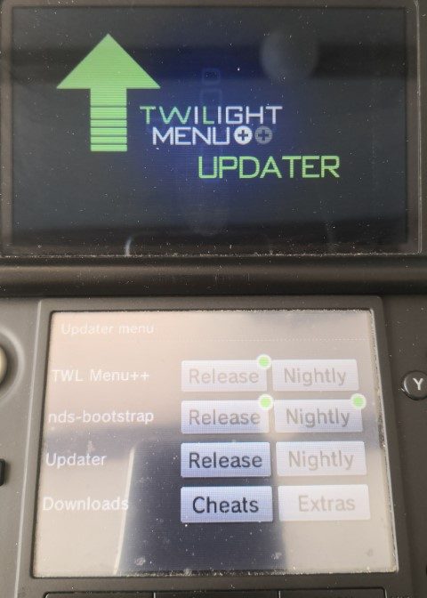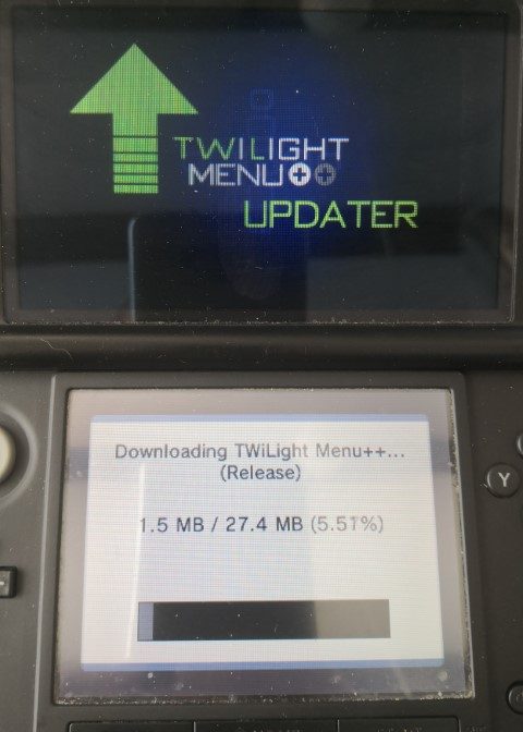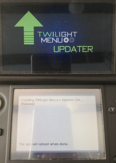 Una vez hecho esto hay que darle a «Release» a «TWL Menu++» y confirmamos con A. Tardará unos 10 minutos y volverá al menú de nuevo donde iremos al siguiente paso.