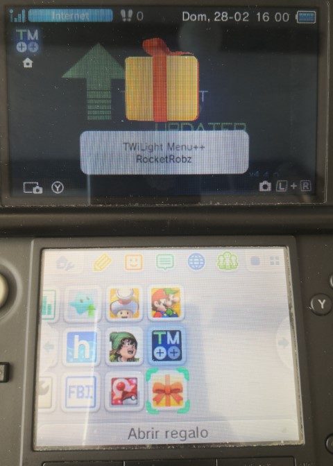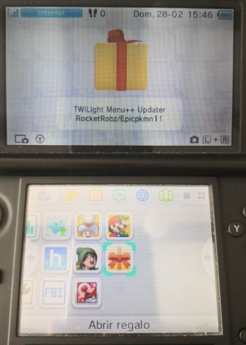 Comentaros que, después de haber «Optimizado» mi 3DS para meter mis juegos favoritos de Nintendo 3DS, he instalado el programa para emular sólo la Nintendo DS con motivo de la doble pantalla ya que después de haber hecho diversas pruebas con diferentes juegos, veo que le falta algo de potencia por lo que opté por usarla sólo para juegos de Nintendo 3DS y juegos de Nintendo DS. Ahora toca disfrutar!!